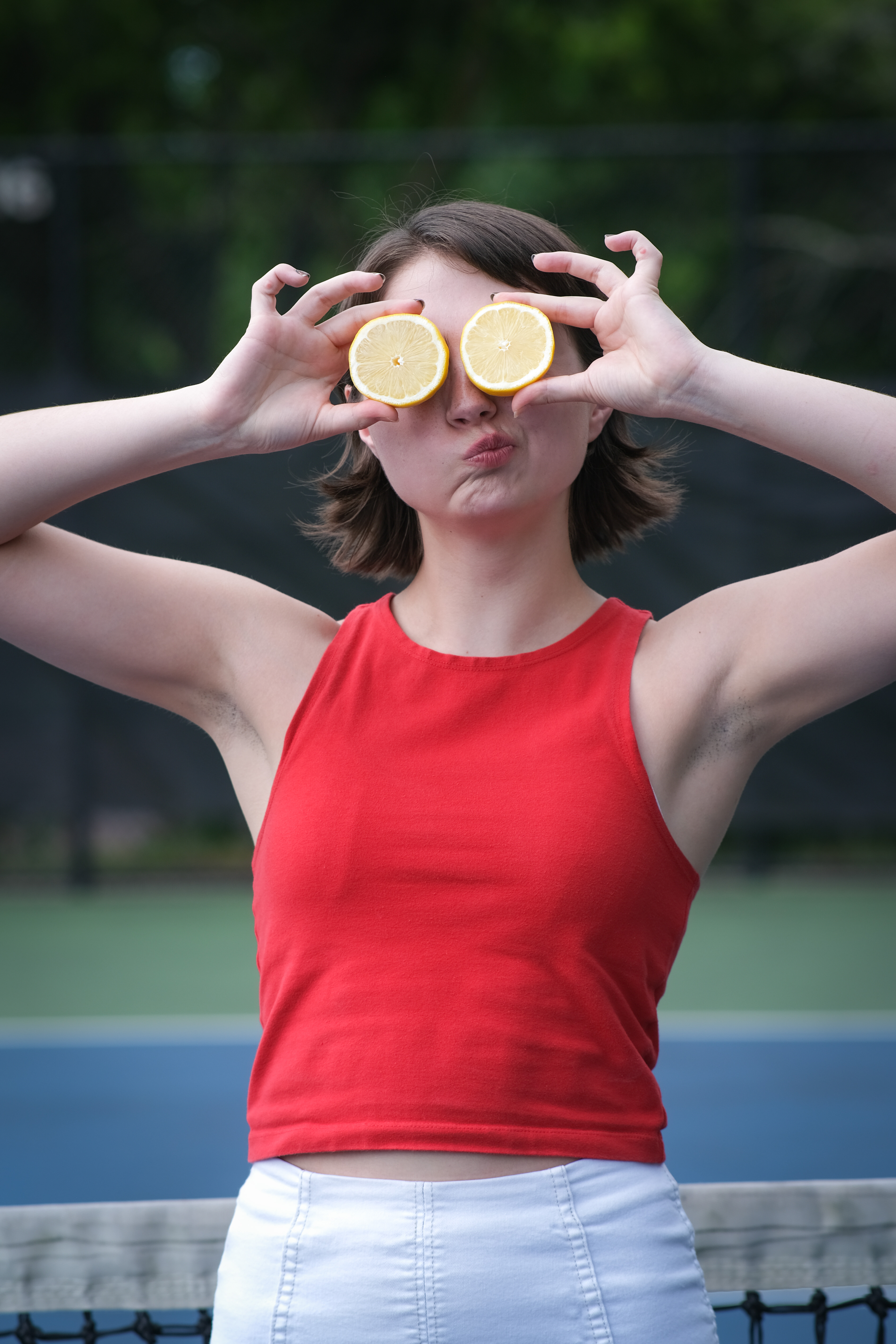 A strange fusion of lemon, tennis, fashion, delivered editorial-style.